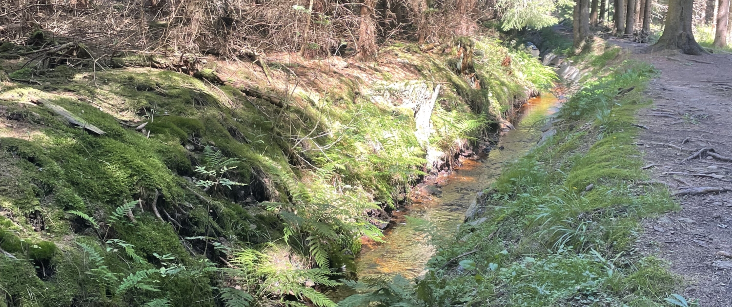 Ein eher unscheinbarer, aber historisch spannender Weg im Schwarzwassertal ist der sogenannte Grüne Graben. Diese künstliche Wasserleitung wurde bereits um 1680 angelegt. Sie diente dazu, Wasser aus dem Gebirge zu den Bergwerken der Region zu leiten. Wasser war im Erzgebirge eine wichtige Energiequelle – unter anderem für Pochwerke und andere Anlagen des Bergbaus. Heute ist der Graben ein ruhiger Wanderweg, der fast eben durch den Wald führt und sich ideal für entspannte Spaziergänge eignet.
